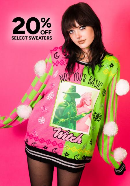 Spirit HalloweenLimited time only! Shop in store and get 20% off on select sweaters.