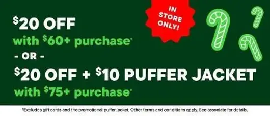 Select styles. Merchandise selection, prices and promotions may vary online and by store location. Cannot be combined with any other offer.
